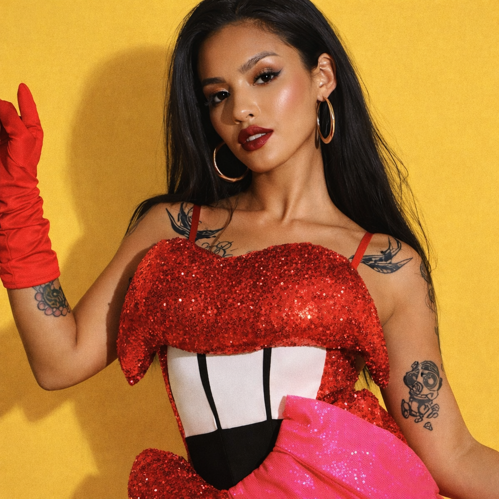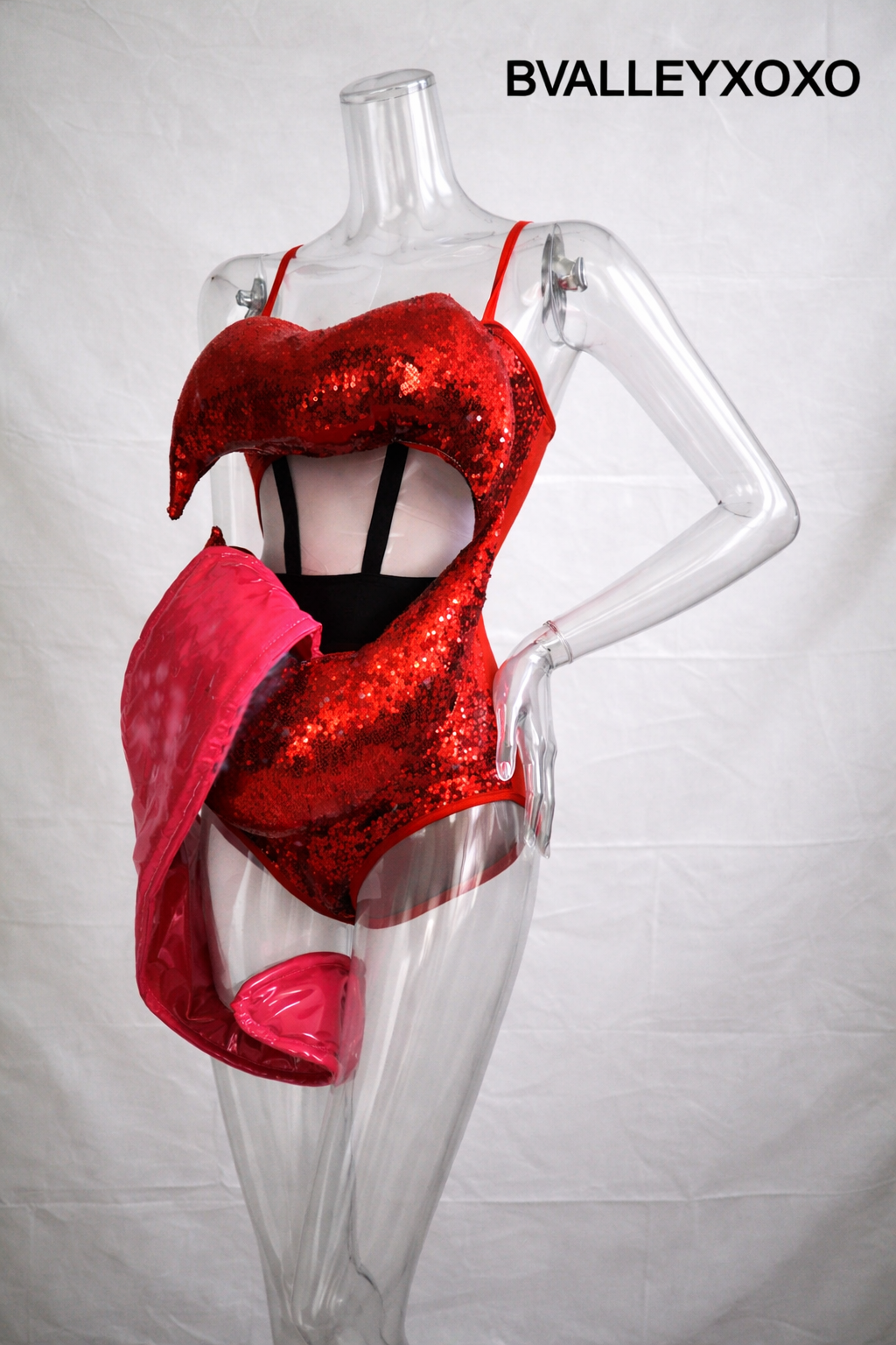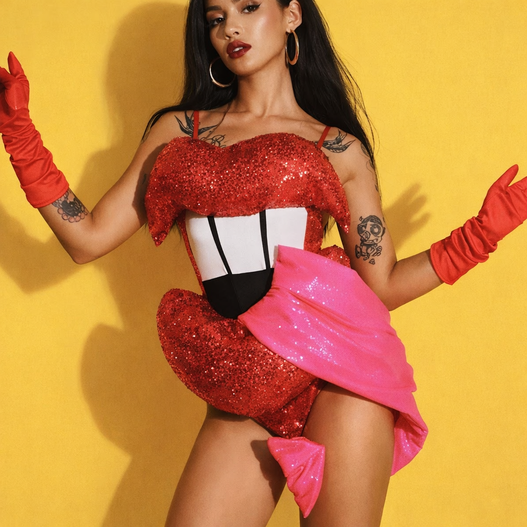 Costume d'halloween spectacle lèvres rouge body spectacle filles paillettes body glisser reine Carnaval Costume