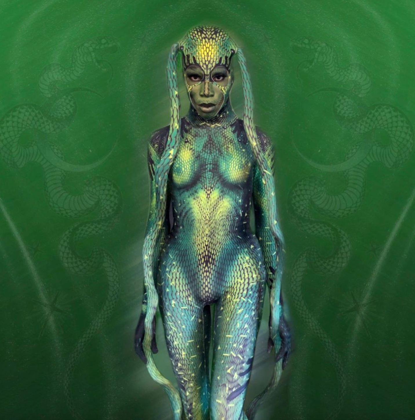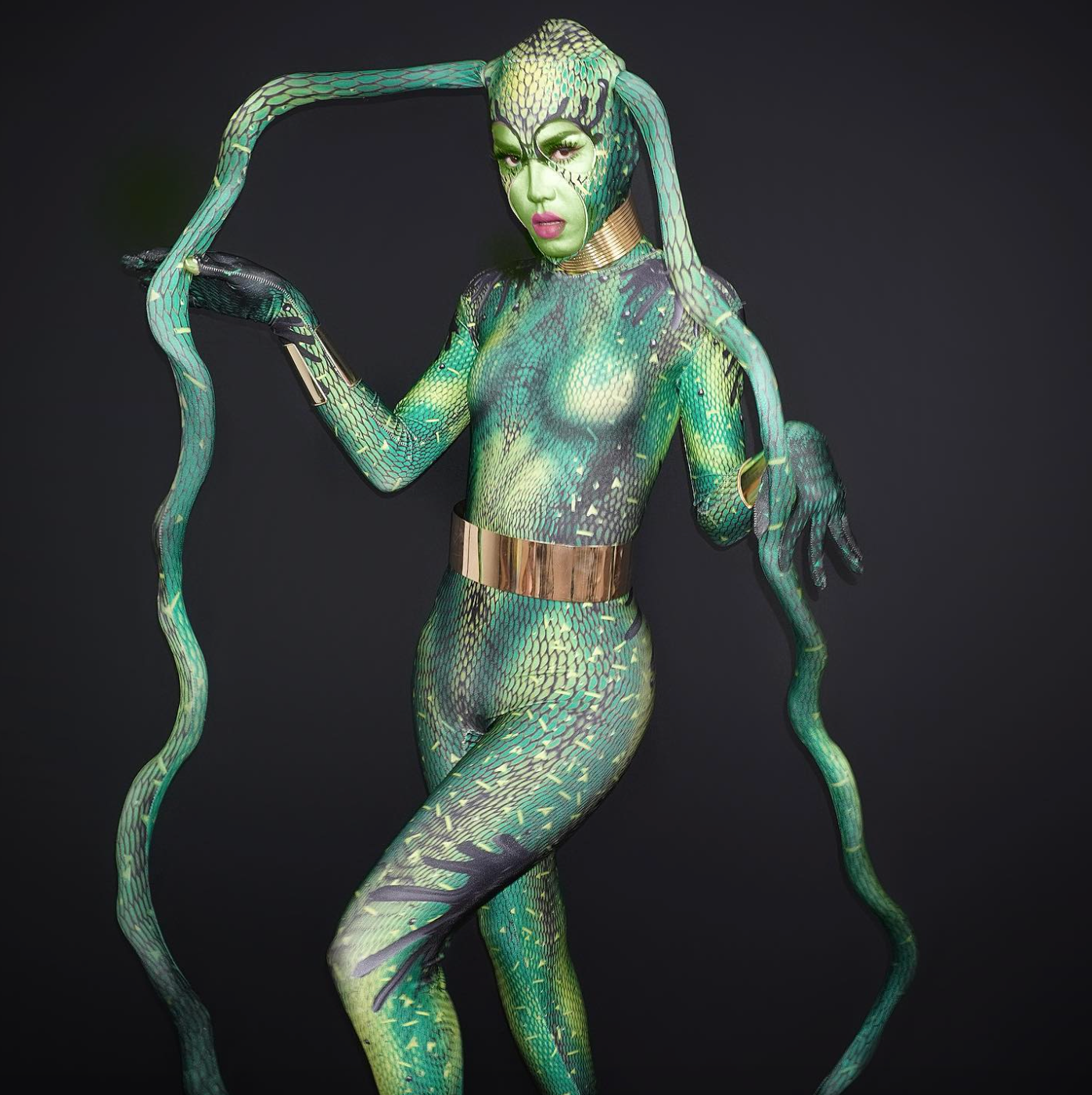 Sa coupe près du corps sculpte une silhouette haute couture, tandis que son design futuriste incarne un style avant-gardiste et inspiré des célébrités, sans aucune limite. Que ce soit pour une soirée d'Halloween, un événement costumé ou une séance photo, cette robe est idéale. costume d'extraterrestre effrayant est conçu pour se démarquer.