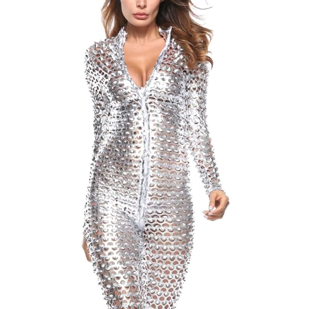 Entrez sous les projecteurs dans ce Metallic Festival Jumpsuit, conçu pour les femmes qui veulent dominer la nuit lors de raves, festivals, soirées disco et Burning Man. Cette tenue rave d'inspiration extraterrestre et futuriste est faite pour réfléchir la lumière, l'énergie et la confiance sous tous les angles.