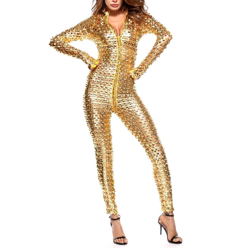 Combinaison Métallique Dorée Festival – Tenue Rave Futuriste Extraterrestre pour Burning Man et Soirées Disco