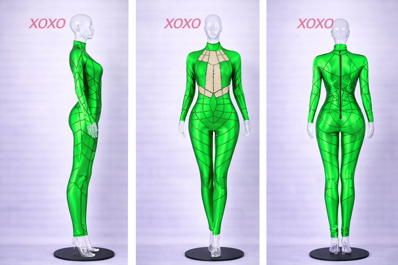 Neon Green Spider Web Catsuit – Sequin Festival Jumpsuit Alien Rave Costume