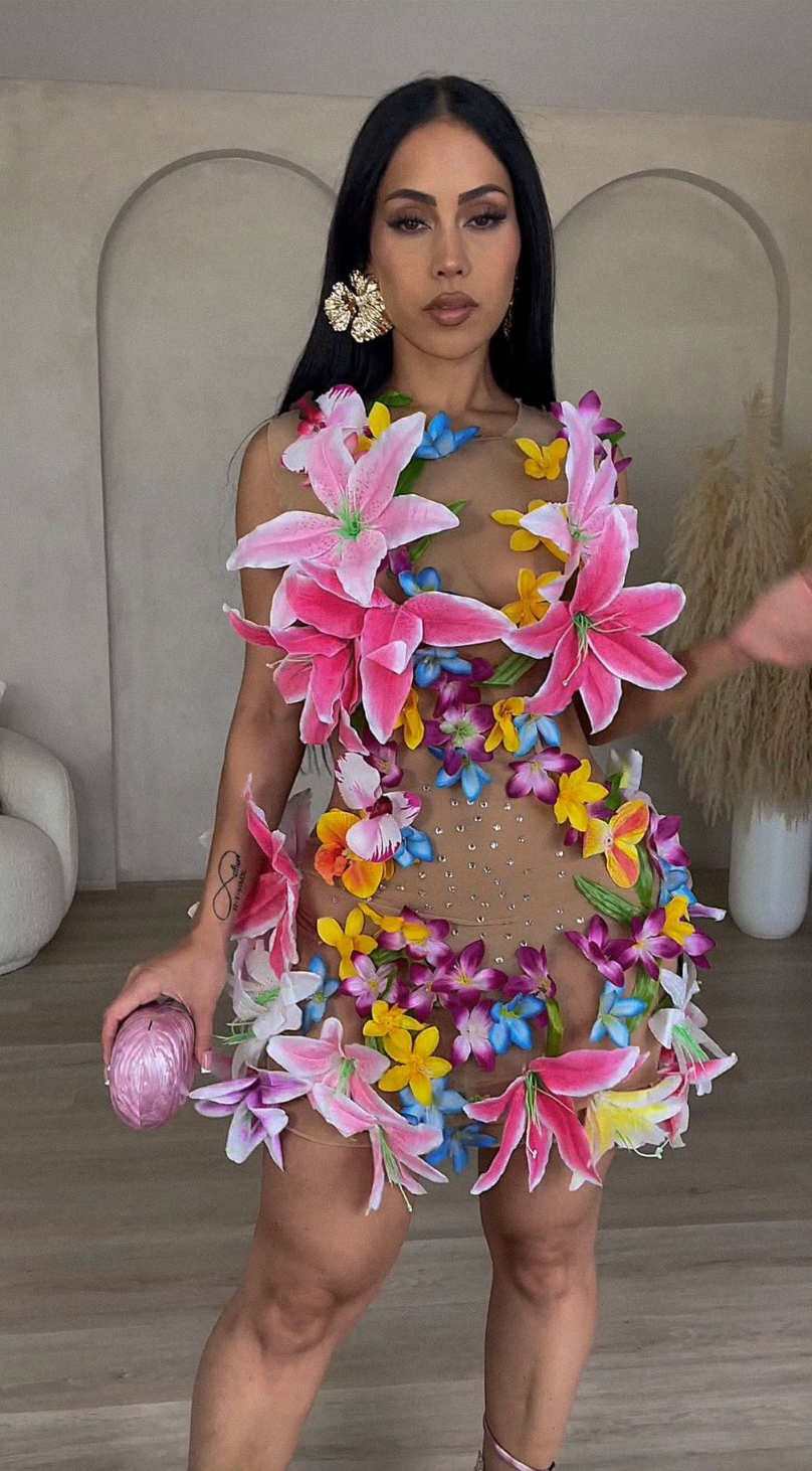 Commande sur mesure Body Nude Strass Robe Maille Transparent Jardin d'Eden 3D Fleurs Robe Fête Bal Mariée Discothèque Robe Celeb Stage Performance Costume, Hawaii Bride, Beachwear party, Tulum dress ROBE: Costume de performance sur scène de fête inspiré des célébrités Robe transparente nue style hawaïen recouvert de fleurs et strass faits pour montrer votre forme sexy. Préparez-vous à embrasser la dame qui sommeille en vous avec des robes à imprimé floral, des maillots de bain, des chaussures et même des lunettes de soleil.  Les fleurs de cette saison se déclinent dans des couleurs pastel douces ou vibrantes de variation du thème du jardin.