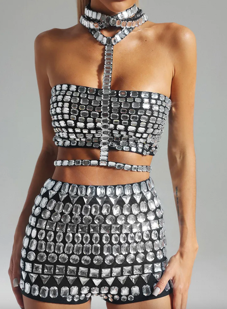 Robe Skims inspirée de Kim K, ornée de strass et de cristaux Swarovski, dos nu, ensemble deux pièces idéal pour une soirée d'anniversaire ou une fête en boîte de nuit.