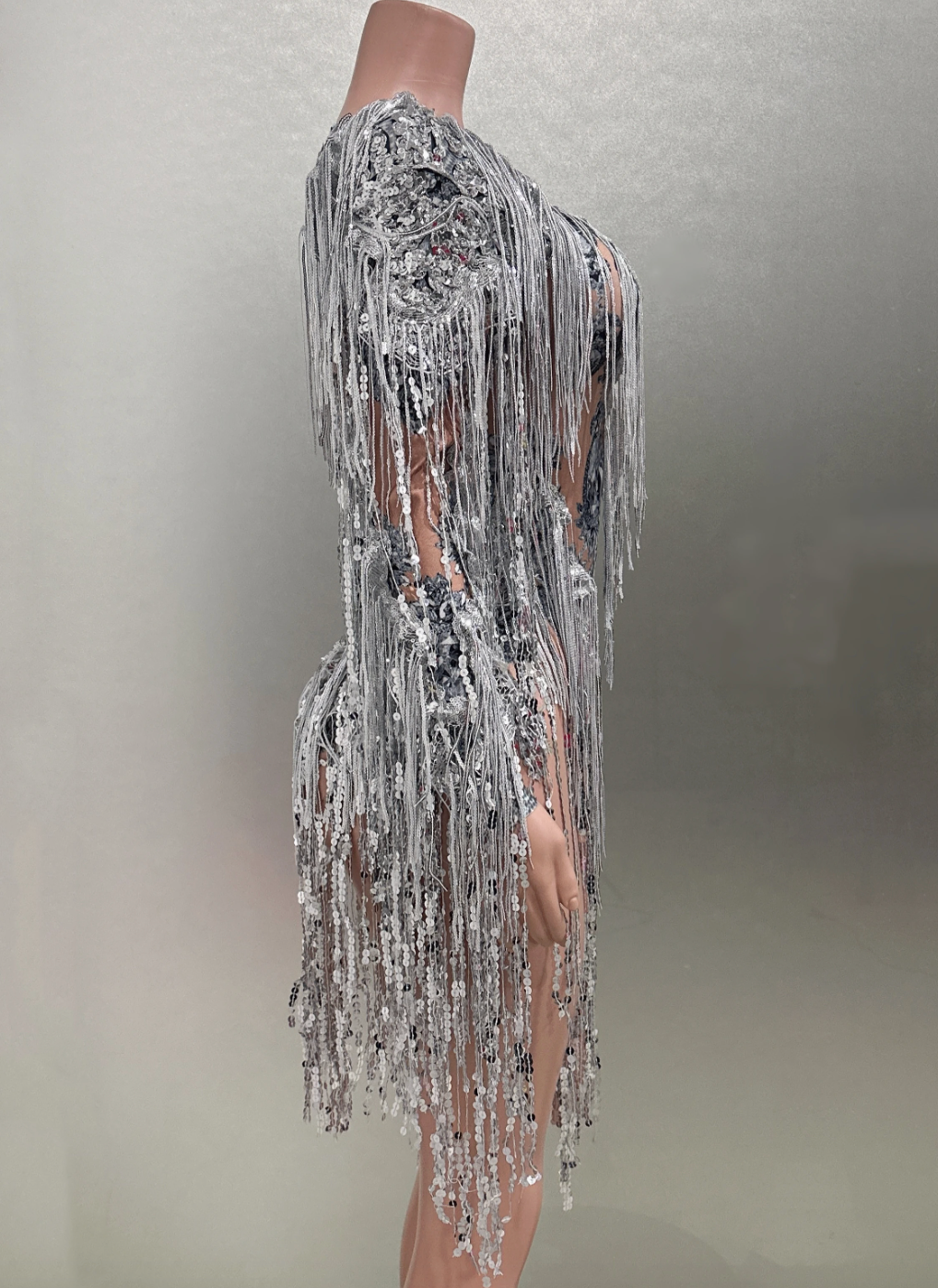 Combinaison à paillettes, body à paillettes, manches à franges, robe d'anniversaire, Costume de fête, Catsuit JLO