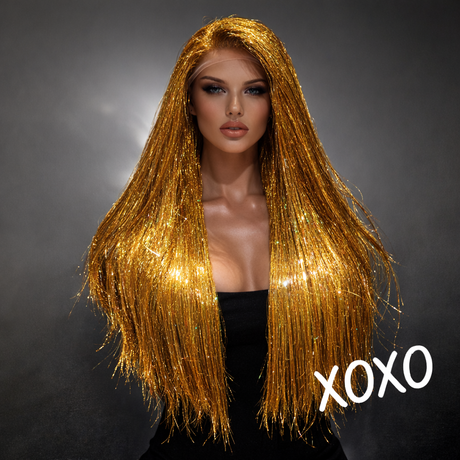 Shine on Stage with the Ultimate Gold Tinsel Lace Front Wig
