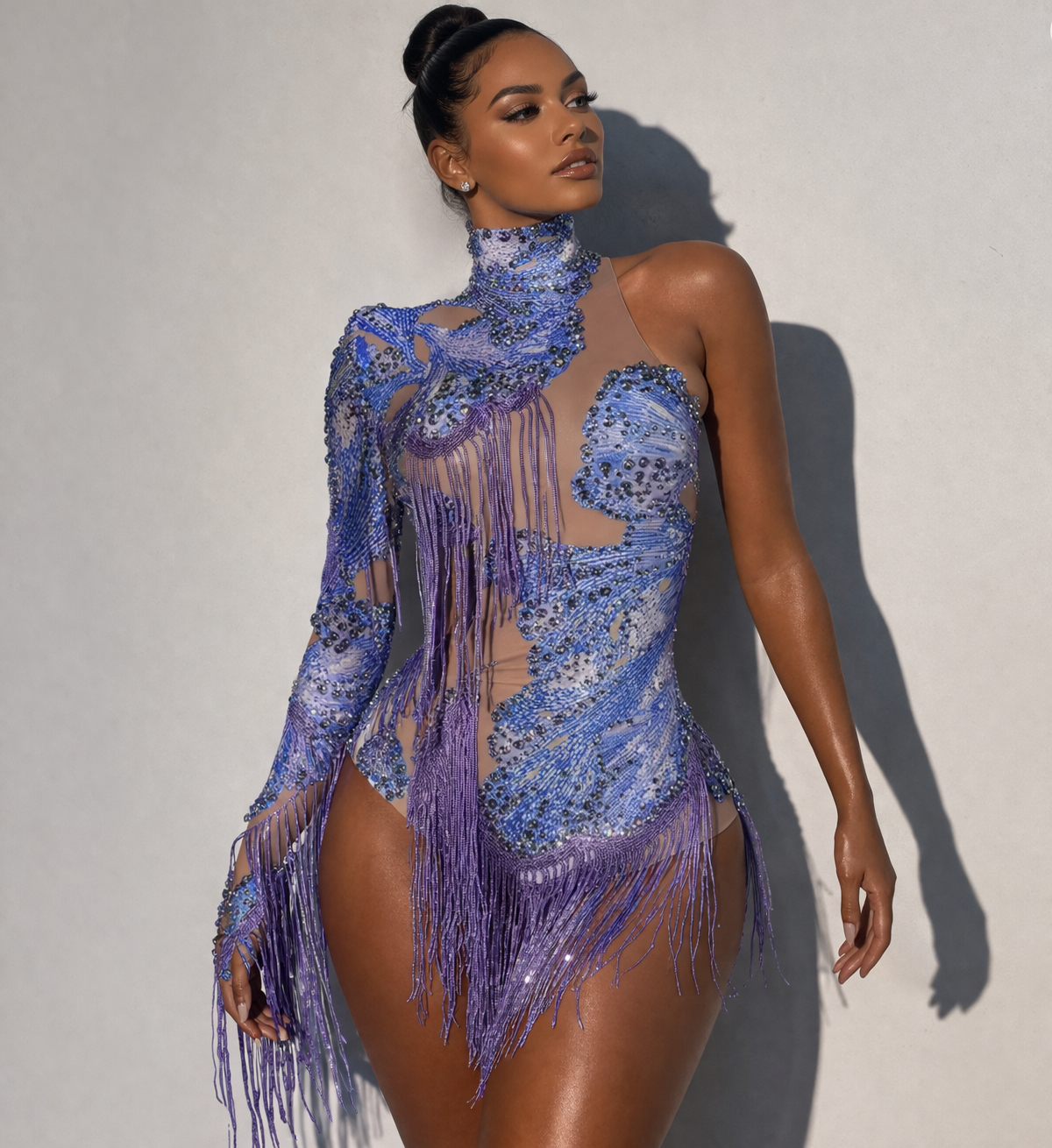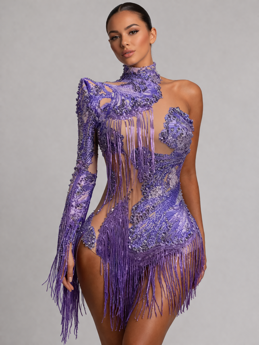 Si vous recherchez un robe de soirée à franges, body ou combinaison Ce modèle à pompons, qui allie mouvement, assurance et style festif, est parfaitement adapté.