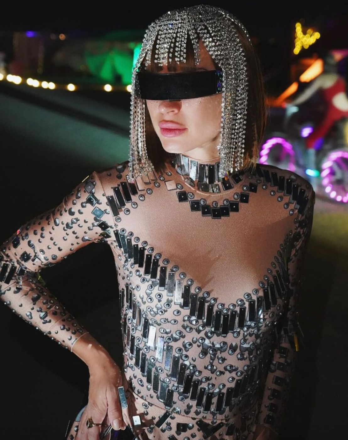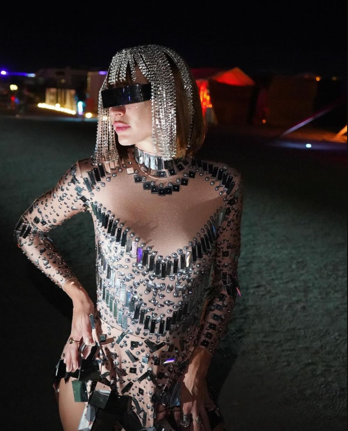 Oui. La finition miroir réfléchissante est conçue pour capter la lumière en club et en festival, vous permettant de briller sur la piste de danse et sur les photos. Portez-la avec des bottes pour un look festival ou des talons pour une tenue de soirée.