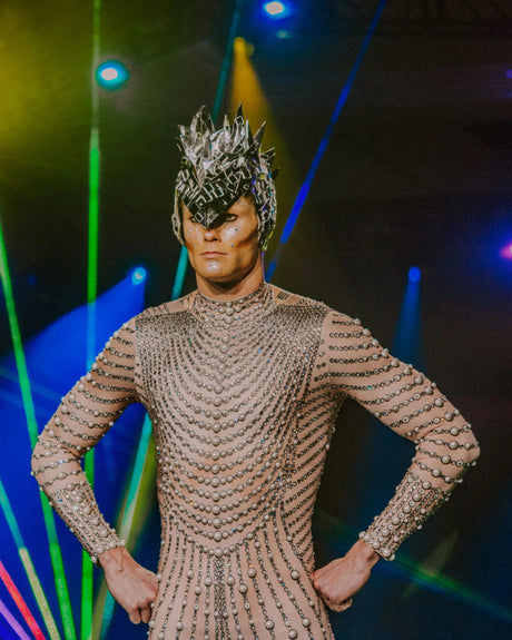 Combinaison moulante strass pour homme, tenue de soirée, costume de danse pour Burning Man