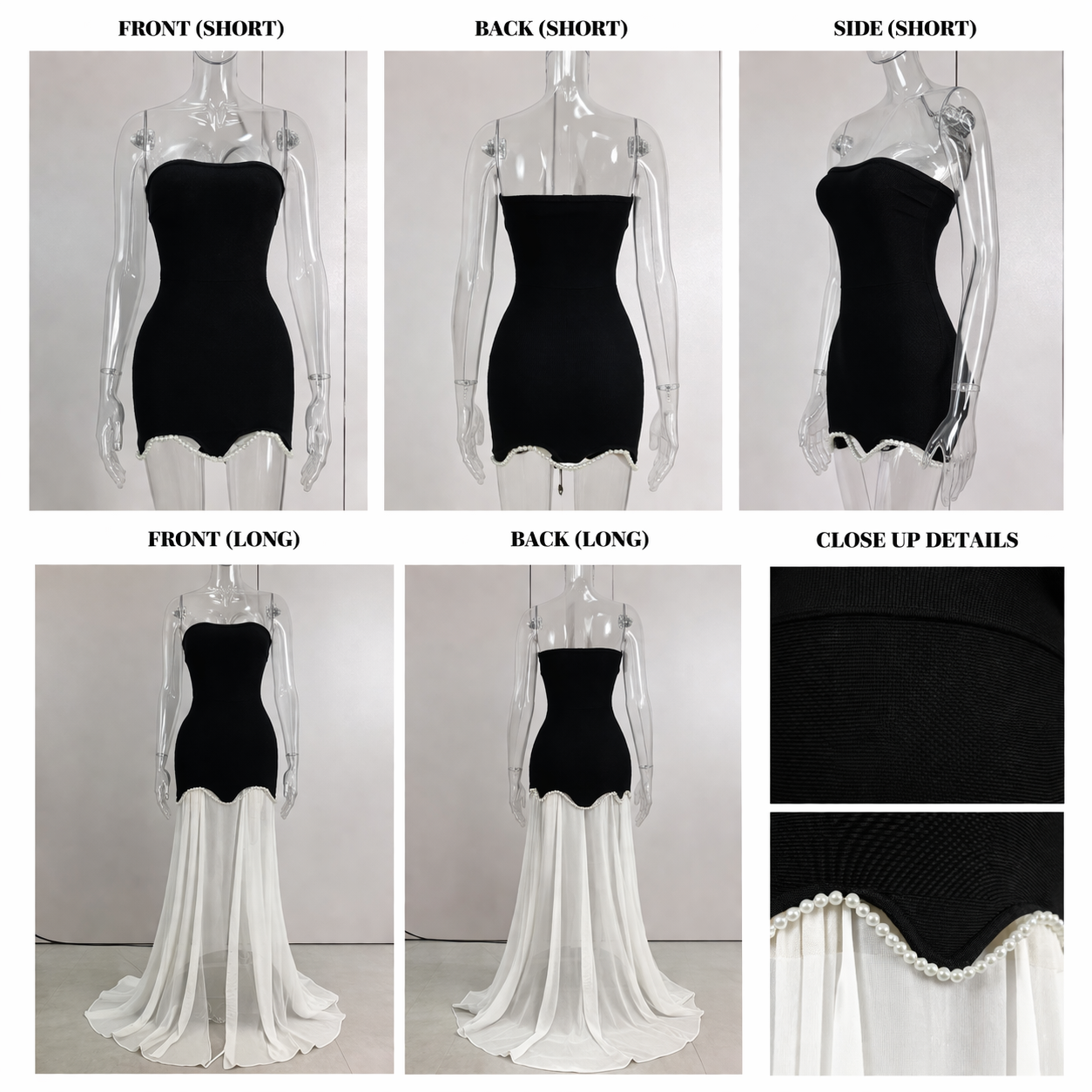Birthday Outfit Long Maxi Dress Luxury Pearl Dress 2 in 1 Short Dress Birthday Black & White Dress
