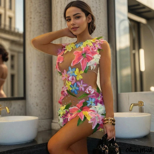 Op maat gemaakte bestelling Bodysuit Nude Rhinestone Jurk Mesh Transparant Tuin van Eden 3D Bloemen Jurk Feest Prom Bruid Nachtclub Jurk Celeb Podium Prestatie Kostuum, Hawaii Bruid, Strandkleding feest, Tulum jurk JURK: Door beroemdheden geïnspireerd feest podium prestatie kostuum Nude transparante jurk Hawaiiaanse stijl bedekt met bloemen en rhinestones gemaakt om je sexy figuur te tonen. Wees voorbereid om je innerlijke dame te omarmen met bloemenprint jurken, badpakken, schoenen en zelfs zonnebrillen. Deze seizoensbloemen komen in de zachte pastel- of levendige kleuren van variaties op het tuin thema.