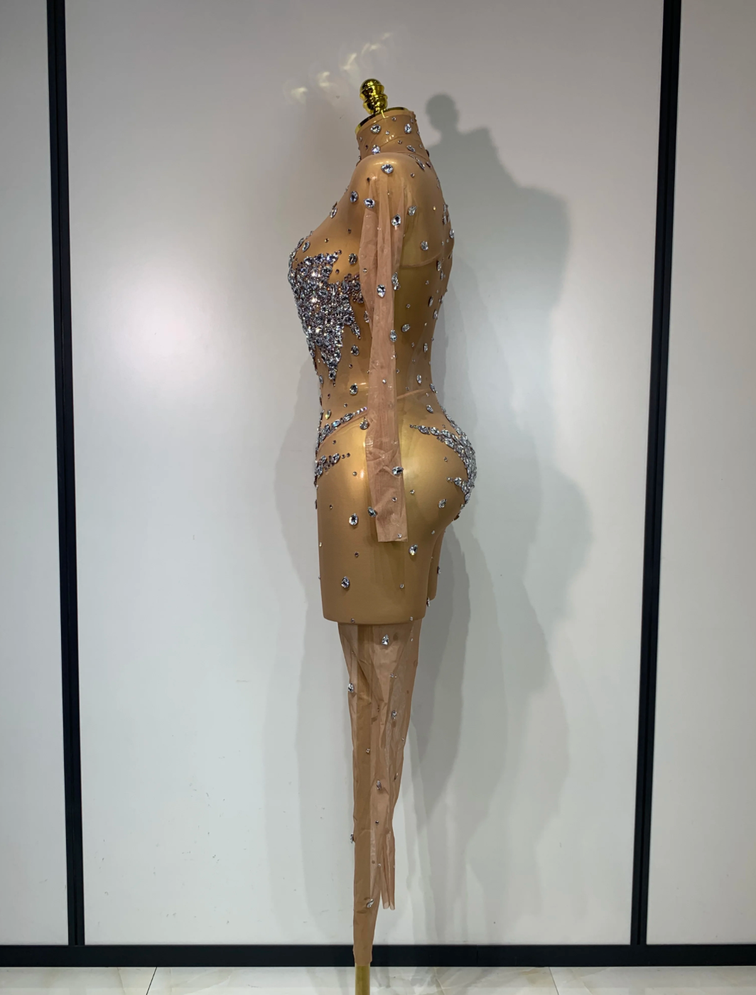 Women Sparkly Rhinestones Mesh See Throug Bodysuit Jumpsuit Stage Performance Costume Nightclub Party Luxury Birthday Outfit