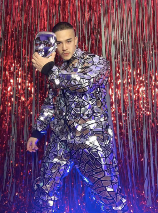 Disco Catsuit Mannen Outfit Holografische Spiegel Jumpsuit Disco Feest Kostuum Voor Mannen