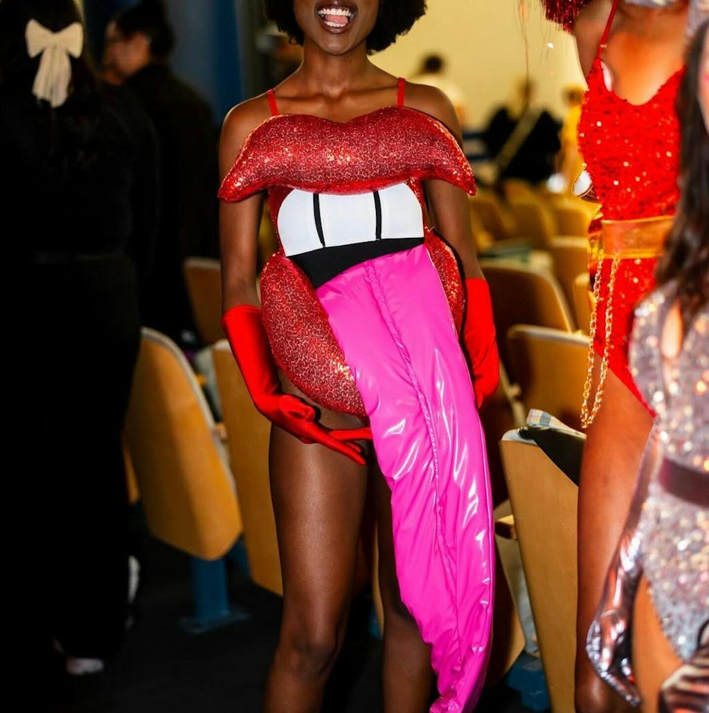 Yes, the design embraces runway confidence, dramatic makeup aesthetics, and ballroom performance energy.