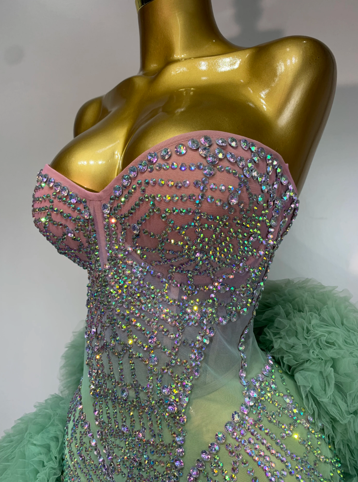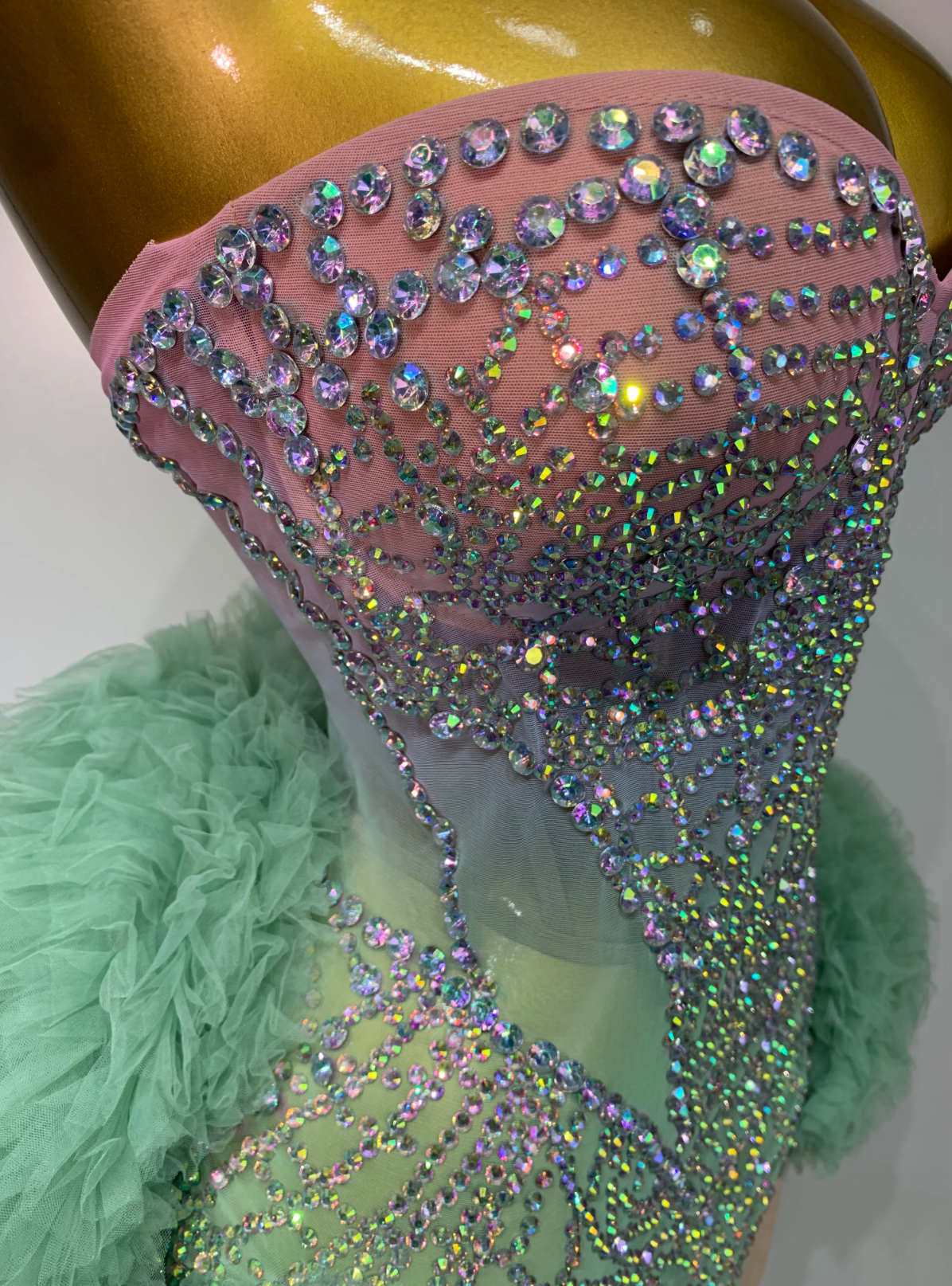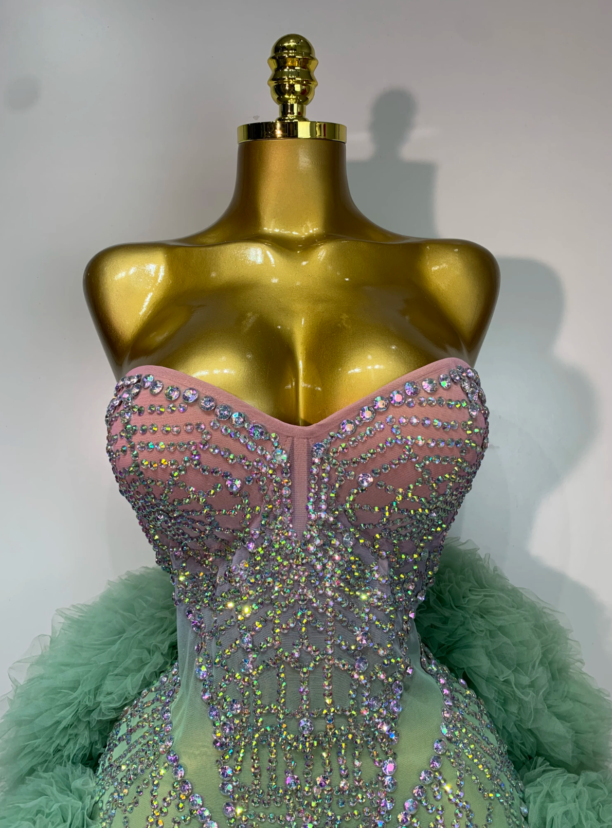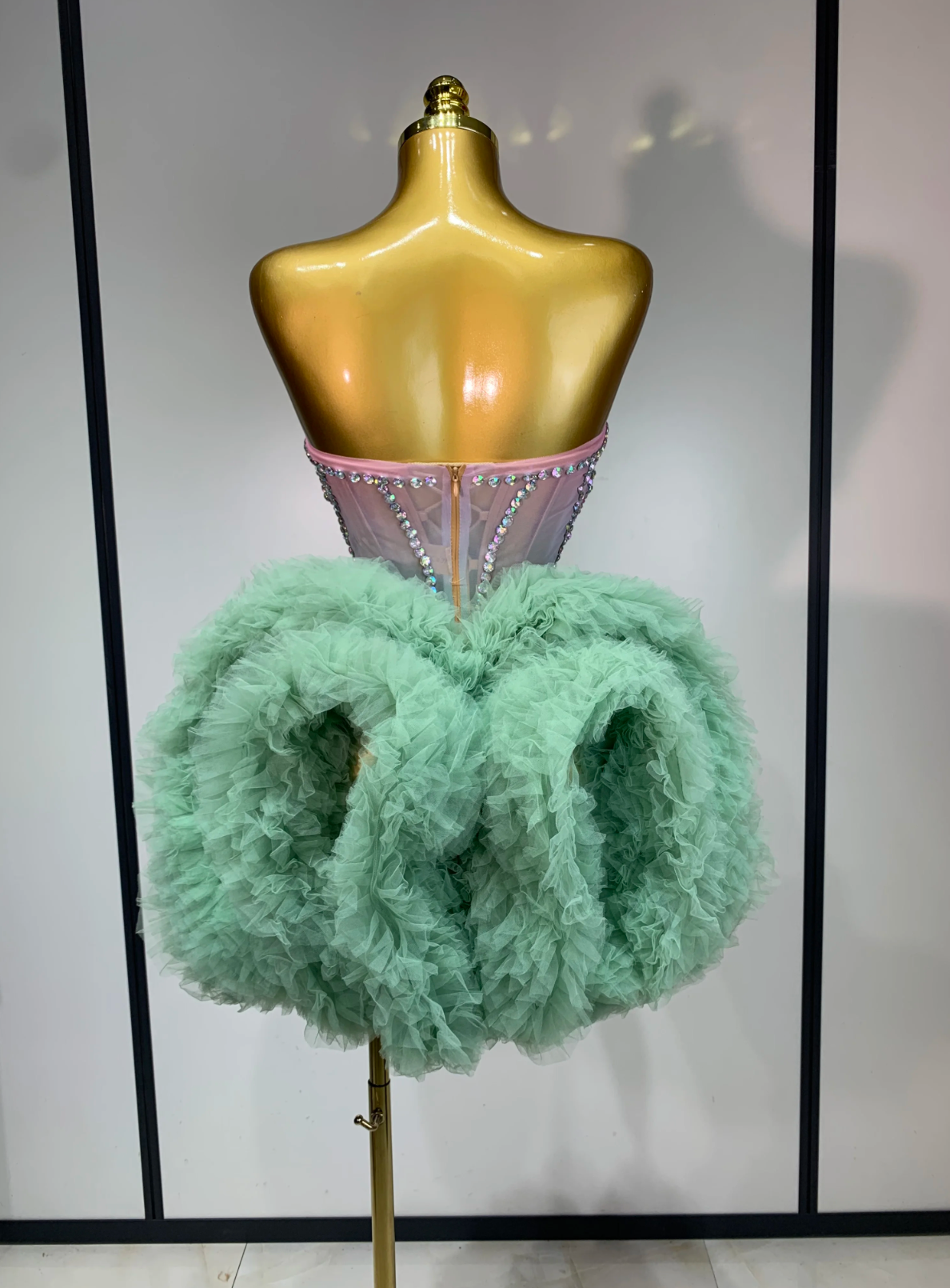 Strapless Green Bustier Mini Dress Sparkly Crystal